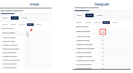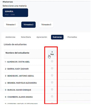 En ese momento se visualiza que ya se colocó la columna con la fecha del examen trimestral.