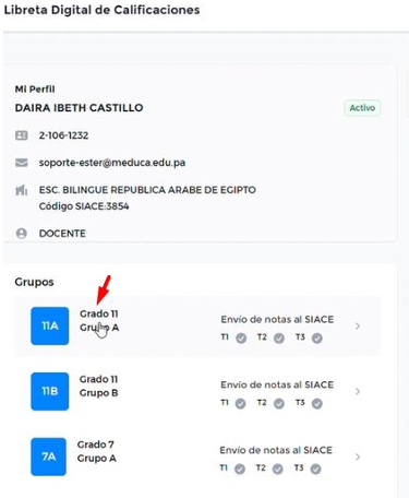 Elegimos el grupo a trabajar, en este caso elegimos al 11 grado A.